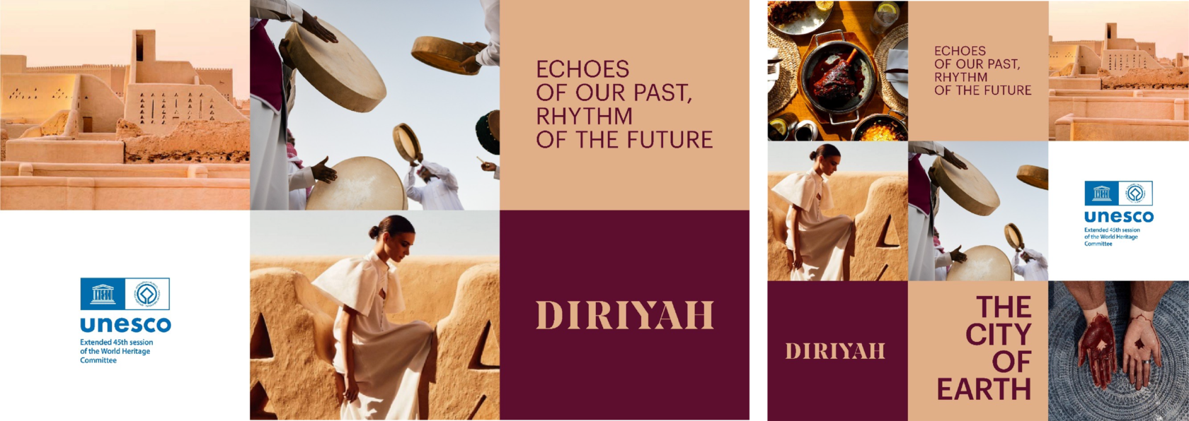 In collaboration with OpenLab, I, as the Creative Director, undertook the task of designing a UNESCO gala dinner for Diriyah spanning two days. The objective was to extend a warm welcome to guests and celebrate Diriyah as a world heritage site. Titled "Echoes of our past, rhythm of the future," the concept focuses on authentically sharing Diriyah's story, envisioning future prosperity, and reinforcing its cultural identity as a global destination. Each day of the gala dinner draws inspiration from Diriyah's beauty, incorporating two distinct color palettes reflecting Saudi culture and Najdi architecture. The ultimate goal is to craft a memorable experience resonating with Diriyah's heritage and aspirations.