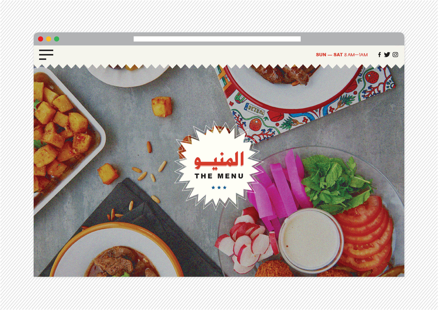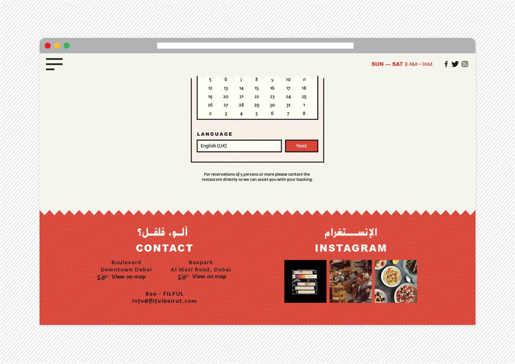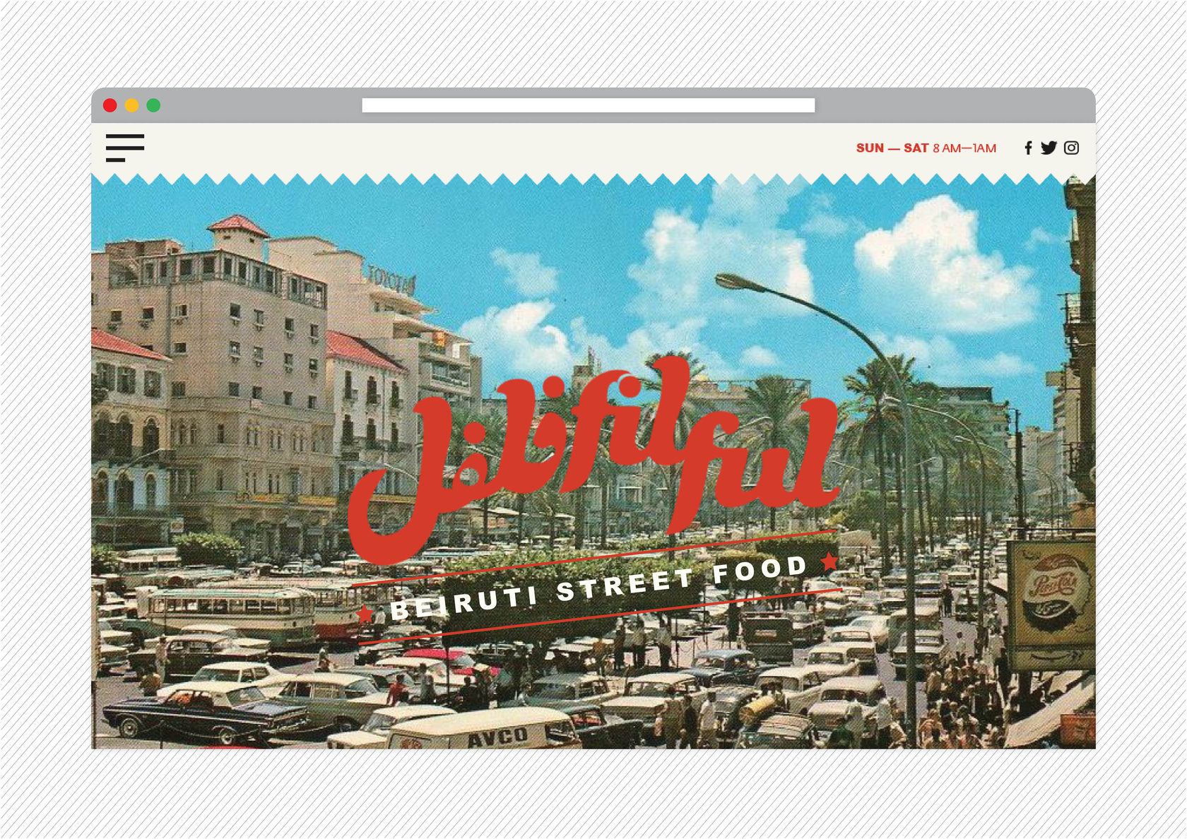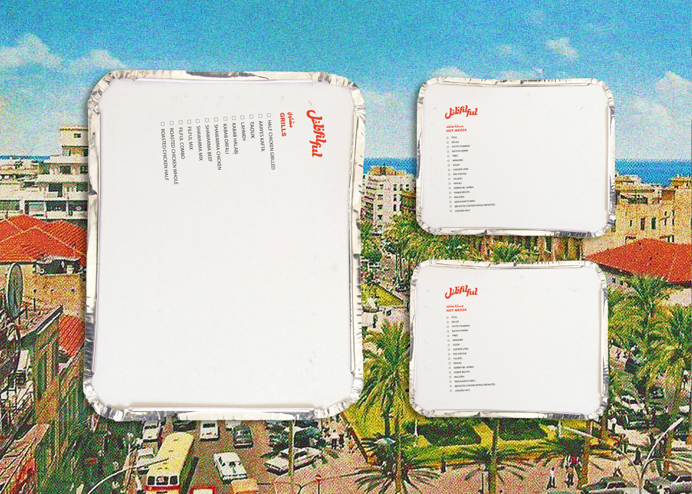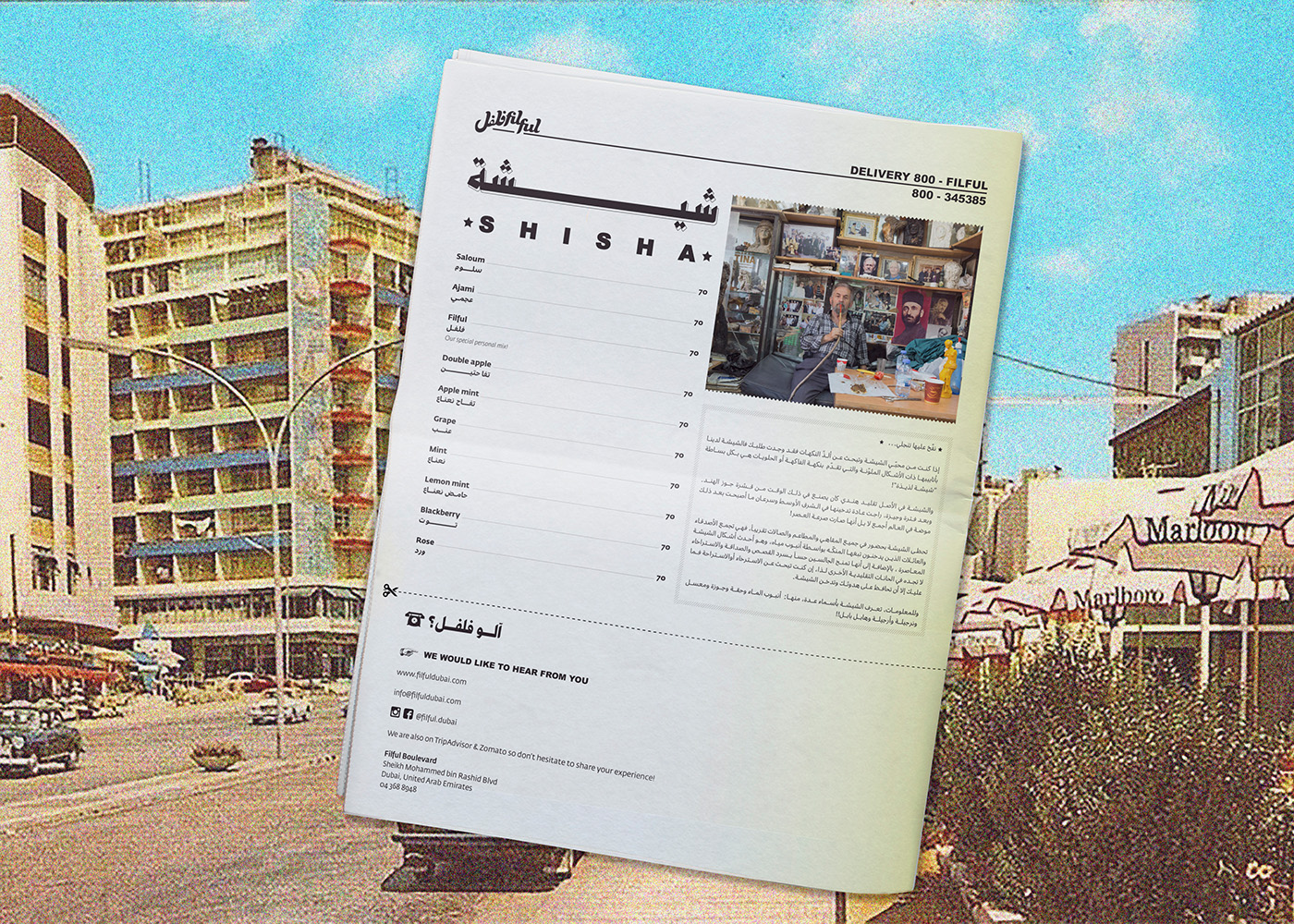 Filful is a unique Lebanese street food restaurant, located in the heart of Dubai, that mashes the old with the new, and the traditional with the hip. It is a place that promotes the Lebanese culture of gatherings, sharing and conversing where you want to be seen in, and a place that holds a special place in the Beiruti’s hearts, yet still relatable to everyone else. The tone of the brand is an approachable, effortless, “do it yourself” culture. The visual identity is inspired and stirred out from the traditional streets and small markets of Beirut. The branding design is fun and quirky accentuated with bold typography, nostalgic imagery, and loud colors, celebrating the ultimate Beiruti experience. The brand story is implemented across print collaterals, business cards, restaurant amenities, menus, and website.