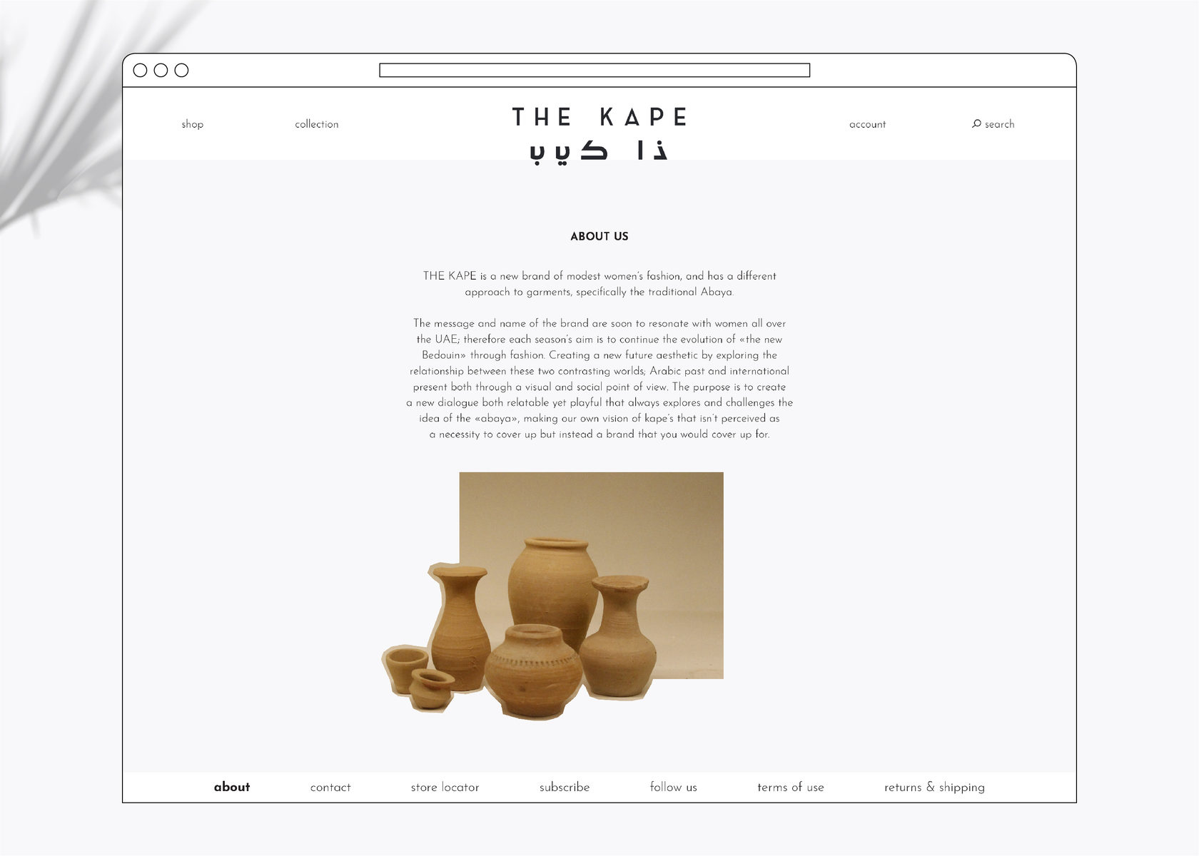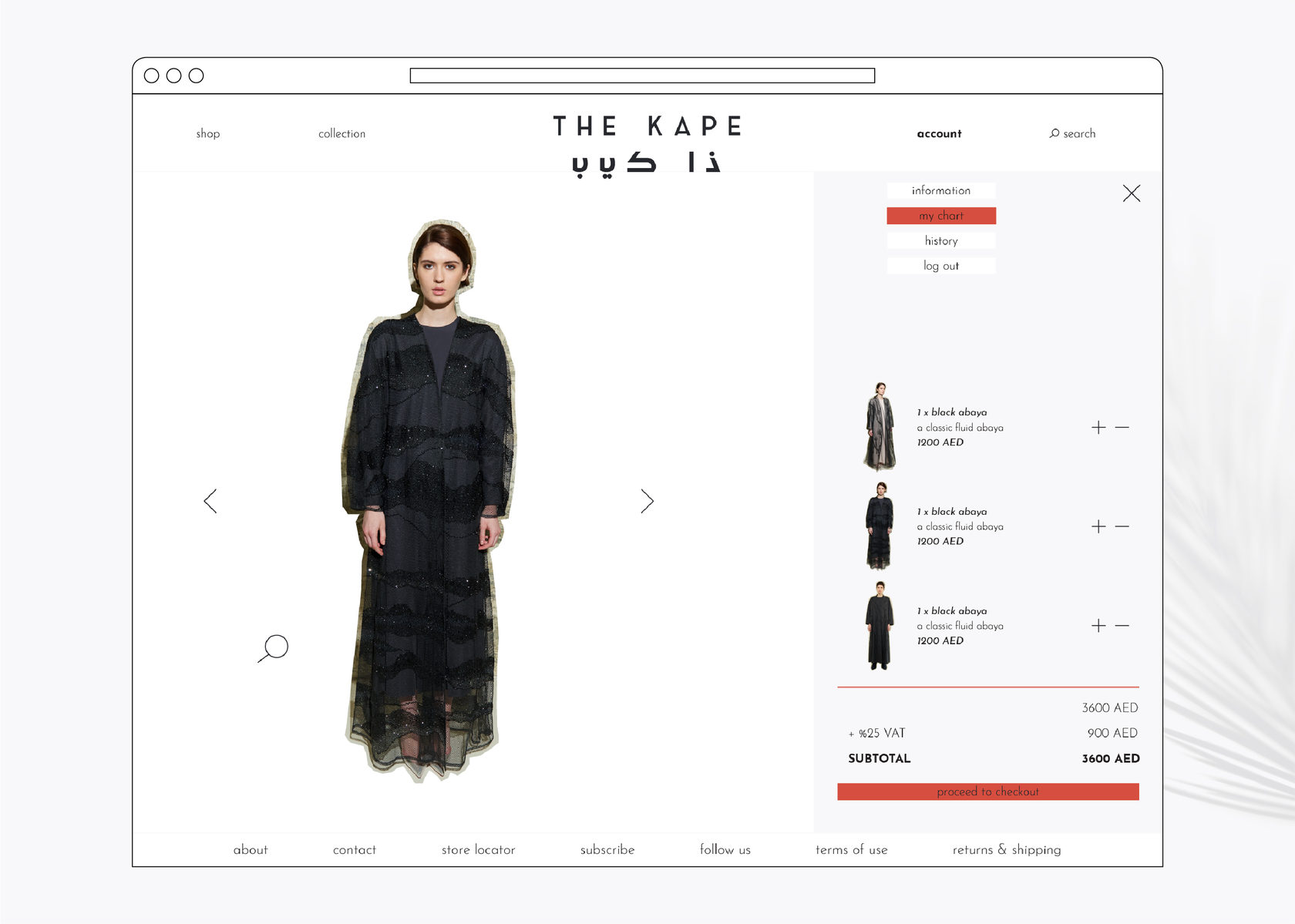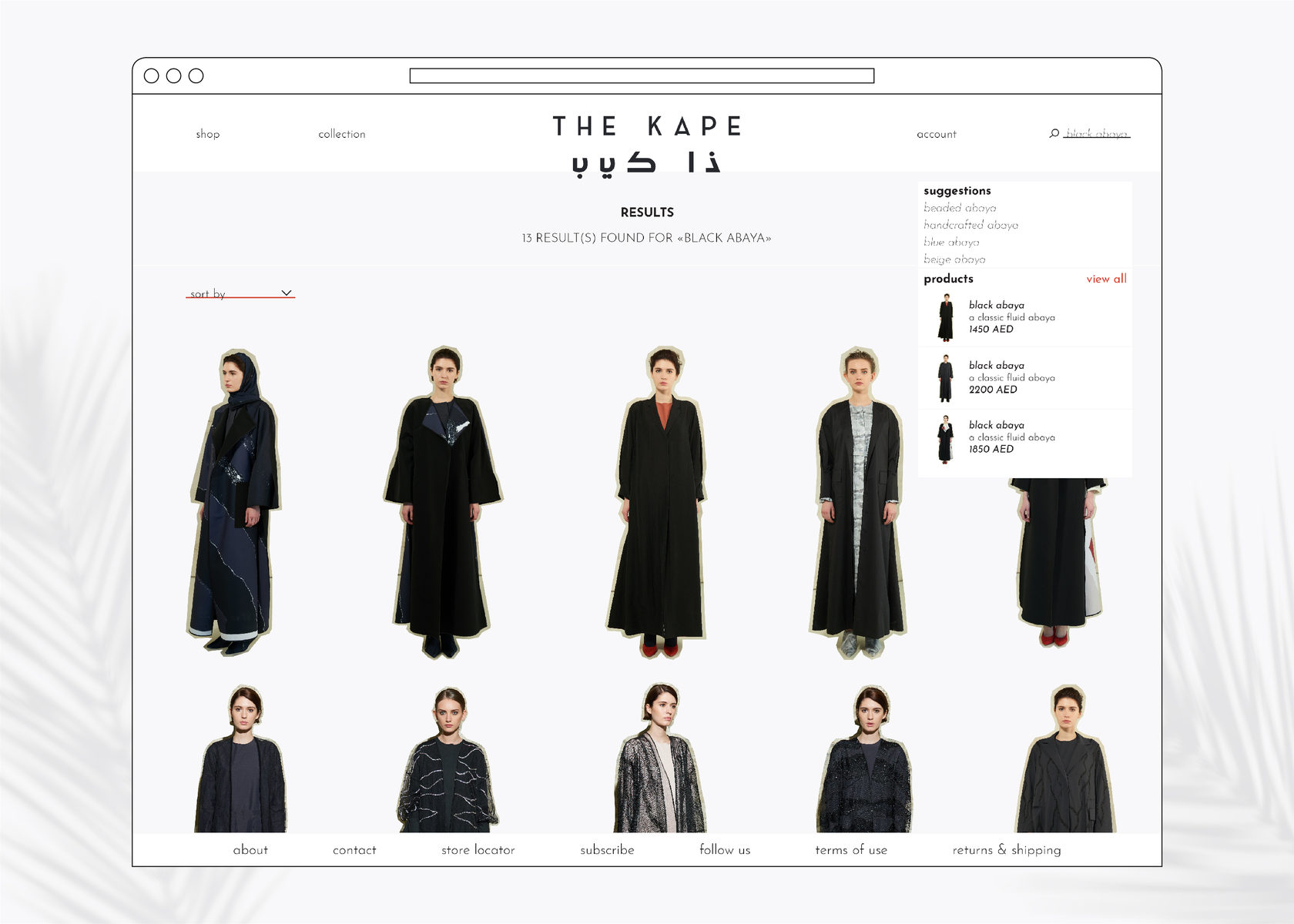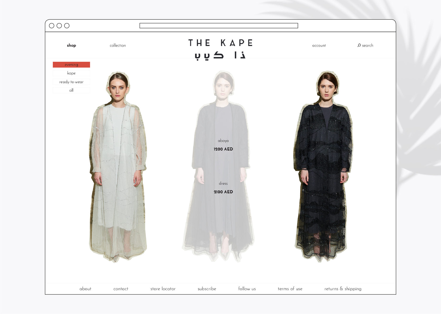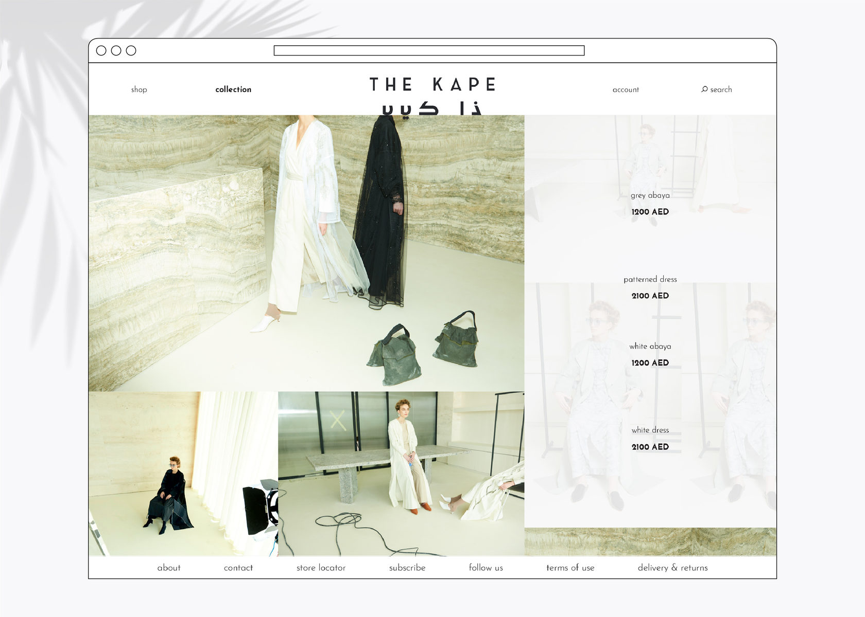 The Kape is a fashion label founded in 2015 by Hanadi Al Hawi, a local of the UAE. The mission of the label is to progress traditional modest wear and to bring a contemporary translation to a garment that has often been perceived with restraints. Drawing inspiration from art, architecture, and global culture, The Kape combines straight-lined designs with elegant sophistication. Throughout the full re-branding and the E-commerce website design, the fashion house touches upon the traditional modest wear together with a modern allure.